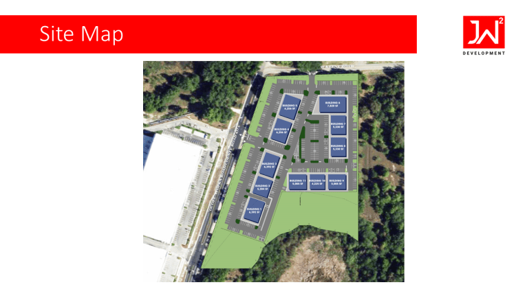 - Premier Mixed-Use Development situated at the intersection of Ocoee-Apopka Road and W Keene Road with dark grey shell buildings for retail and medical/office opportunities